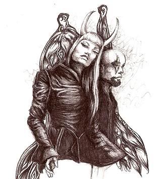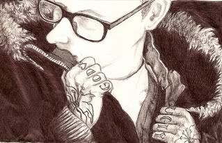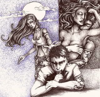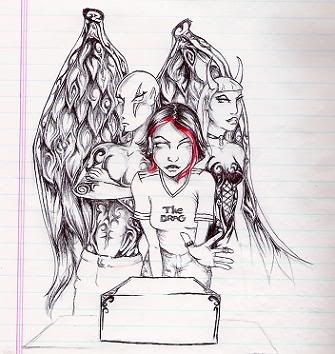 This picture was originally drawn from the inside cover of a Snake River Conspiracy CD, but then became infused with characters that I had created in a comic called "Monsters & Angels."